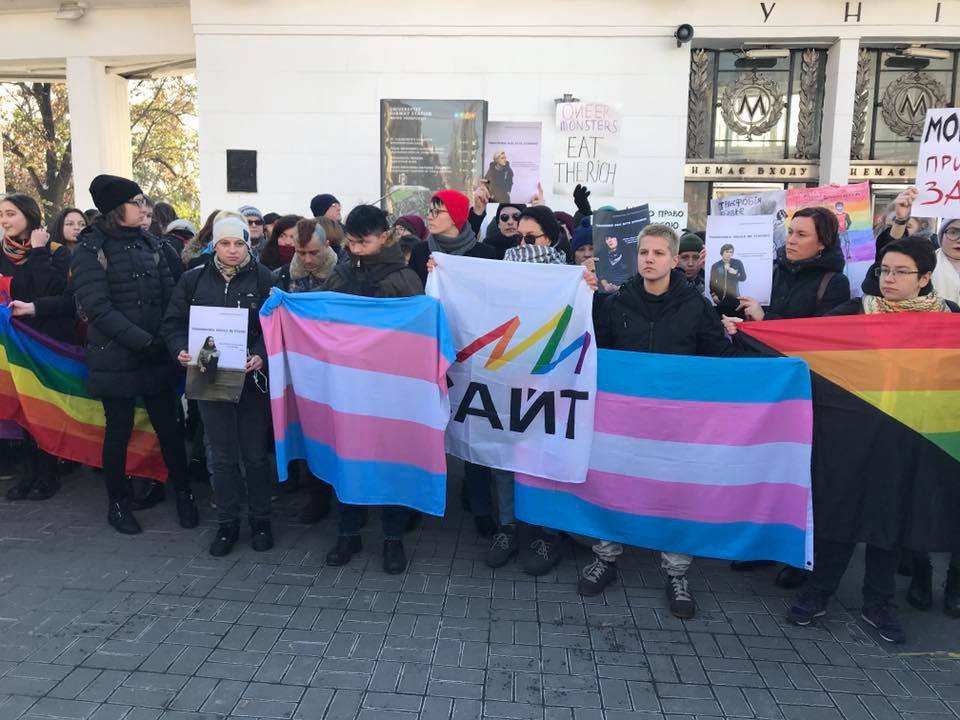 "18 ноября должен состояться марш к Международному дню памяти трансгендерных людей. Проведение марша было сорвано, зато удалось провести короткий митинг, который длился двадцать минут.
