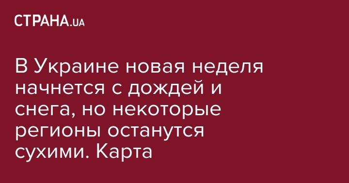 В Украине новая неделя начнется с дождей и снега, но некоторые регионы останутся сухими. Карта