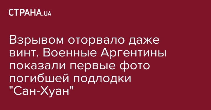 Взрывом оторвало даже винт. Военные Аргентины показали первые фото погибшей подлодки "Сан-Хуан"