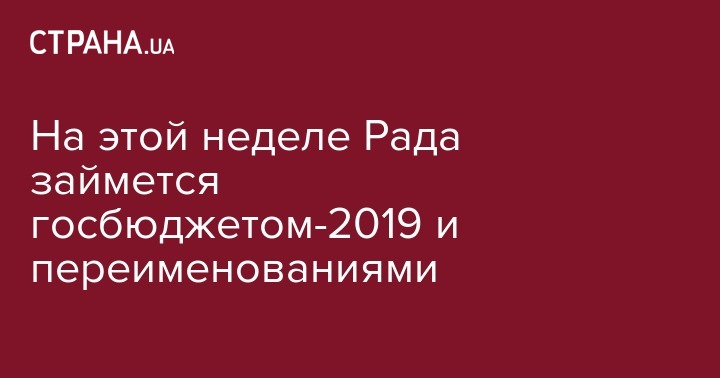 На очередной пленарной неделе, с 20 по 23 ноября, в Верховной Раде планируют во втором чтении рассмотреть проект бюджета на 2019 год. Также нардепы планируют обратиться в Конституционный суд с вопросом о переименовании Кировоградской и Днепропетровской областей. Об этом передает пресс-служба Рады.