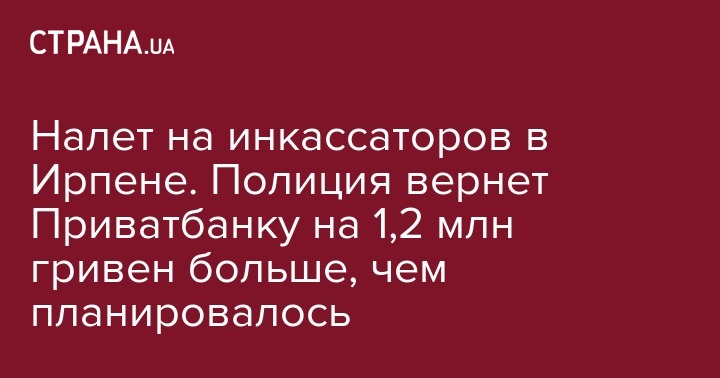 Полиция возвратит Приватбанку 3 млн грн из похищенных у инкассаторов в Ирпене, а не 1,8 млн, как сообщалось ранее.
