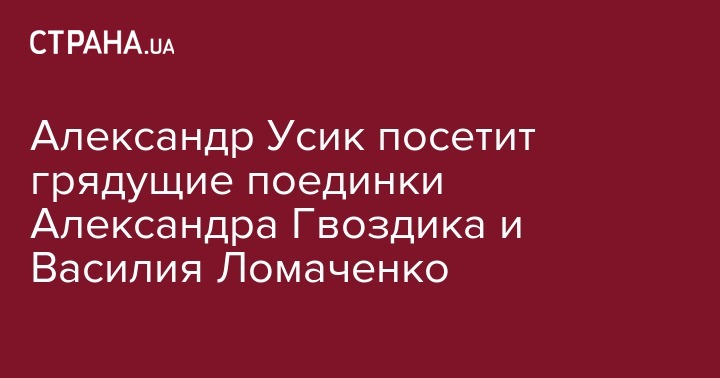 Абсолютный чемпион мира по боксу в тяжелом весе украинец Александр Усик (16-0, 12 КО) придет на следующие бои своих соотечественников Александра Гвоздика (15-0, 11 КО) и Василия Ломаченко (11-1, 9 КО).