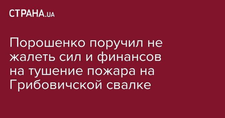 Порошенко поручил не жалеть ни сил, ни средств для того, чтобы как можно скорее локализовать и полностью ликвидировать новое возгорание мусора. Президент пообещал решить любые проблемы, которые могут возникнуть с поставкой горючего или дополнительного финансирования для организации мероприятий по ликвидации пожара.
