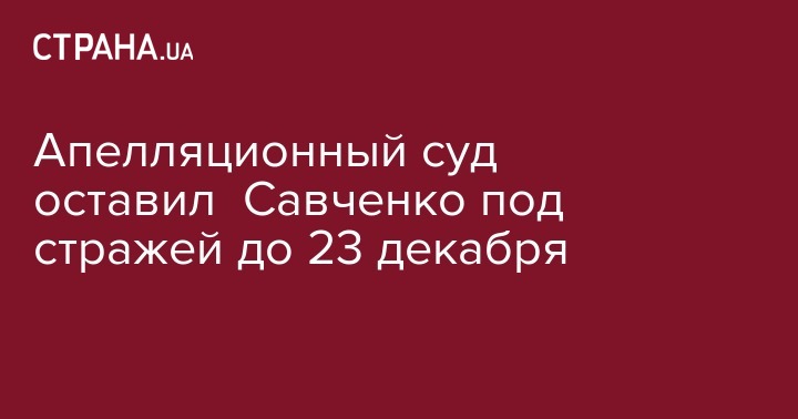 Апелляционный суд оставил Савченко под стражей до 23 декабря