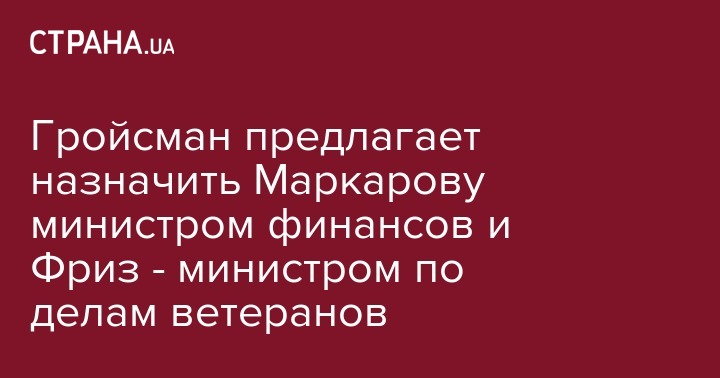 Гройсман предлагает назначить Маркарову министром финансов и Фриз - министром по делам ветеранов