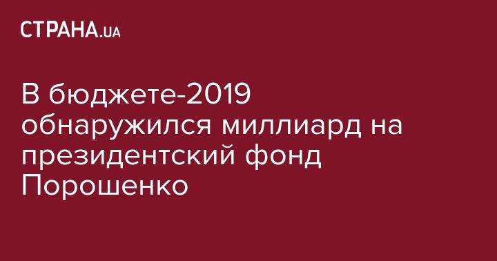 Предприниматель Анаталий Амелин разместил в Facebook выдержку из документов Верховной Рады по проекту госбюджета на 2019 год из которого следует, что в проект заложен миллиард гривен для президентского фонда.