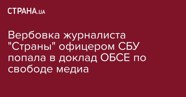 Вербовка журналиста "Страны" офицером СБУ попала в доклад ОБСЕ по свободе медиа