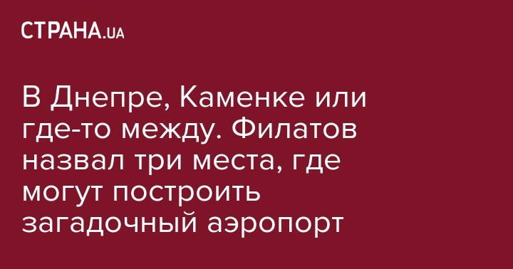"Где будет строиться аэропорт - это вопрос еще не решен. Почему? Потому что рассматриваются три варианта. Первый вариант - он уже попал в медиа - это поселок Соленое, второй - на месте ныне действующего аэропорта. Есть еще один, резервный вариант, - аэропорт на месте действующего аэропорта в Каменке (аэродром авиаспортивного клуба, - Прим. Ред.)", - сказал Филатов.