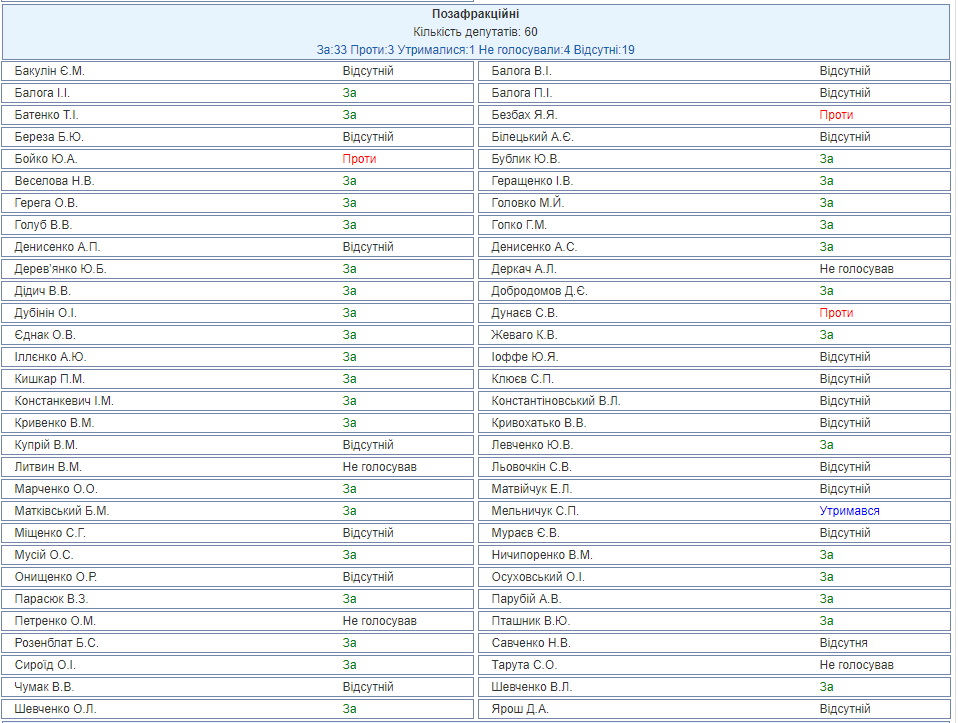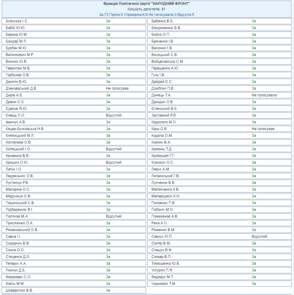 На сайте Рады появился список проголосовавших. Известно, что в БПП проголосовали 124 депутата. В Народном фронте - 73, среди внефракционых сразу 33 депутата из 60 поддержали инициативу. Оппозиционный блок проголосовал против.