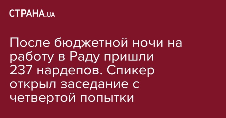 В пятницу, 23 ноября, спикер Верховной Рады Андрей Парубий открыл утреннее заседание парламента. После "ночи принятия бюджета-2019" в зале сначала зарегистрировались 176 народных депутата, со второй попытки - 195, и с третьей - 212. Спикер несколько раз призывал лидеров фракций, чтобы они обеспечили явку нардепов. И после четвертой попытки на табло высветилась цифра 237. Об этом сообщает 112 Украина