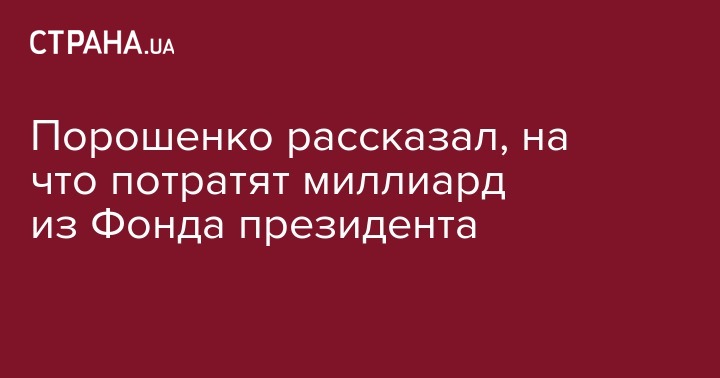 Порошенко рассказал, на что потратят миллиард из Фонда президента