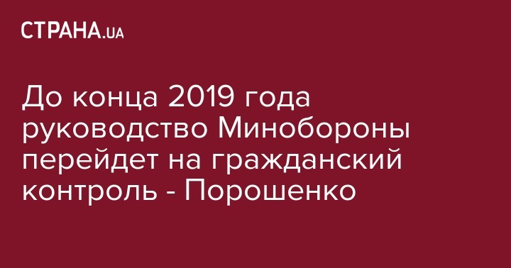 До конца 2019 года все руководство Министерства обороны Украины перейдет на гражданский контроль. Об этом сообщил президент Украины Петр Порошенко во время выступления перед студентами в Киеве в пятницу, 23 ноября. Его цитирует Корреспондент.