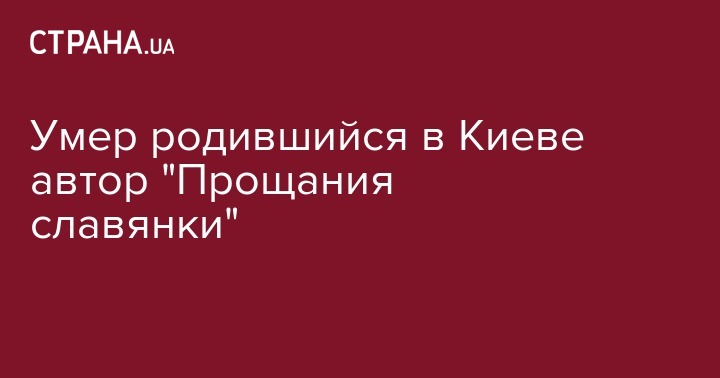 Умер родившийся в Киеве автор "Прощания славянки"