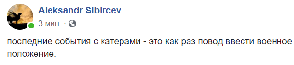 "Последние события с катерами - это как раз повод ввести военное положение", - пишет в Facebook журналист Александр Сибирцев.