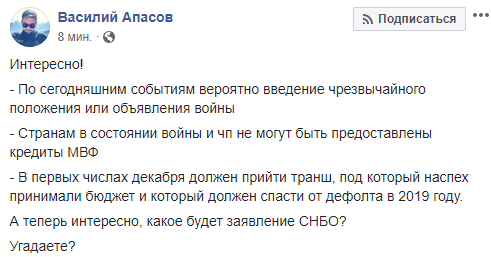 А теперь интересно, какое будет заявление СНБО? Угадаете?", - написал журналист Василий Апасов.