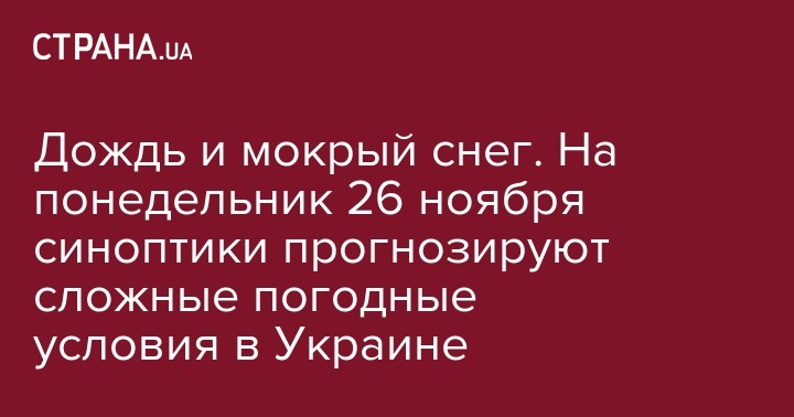 Дождь и мокрый снег. На понедельник 26 ноября синоптики прогнозируют сложные погодные условия в Украине