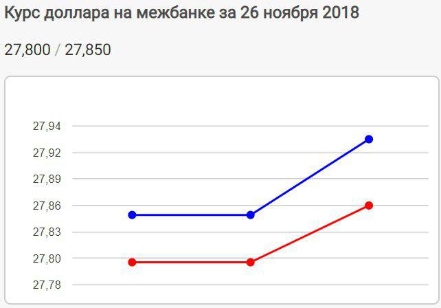 А вот как рос курс доллара сегодня на межбанке. Это график Минфина за 26 ноября.