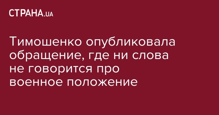 Она выразила благодарность за слова моральной поддержки и попросила оказать Украине "конкретную, четкую и действенную помощь, включая военную". При этом лидер "Батькивщины" в опубликованном обращении в Фейсбуке, ни разу не упомянула про военное положение, вопрос о котором через несколько часов планируют рассмотреть в Раде