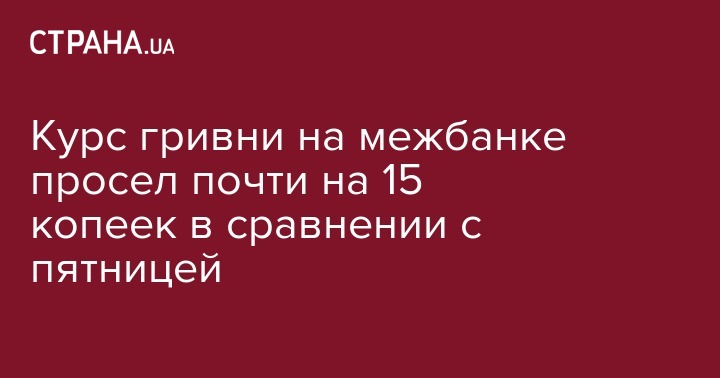 Курс гривни на межбанке просел почти на 15 копеек в сравнении с пятницей