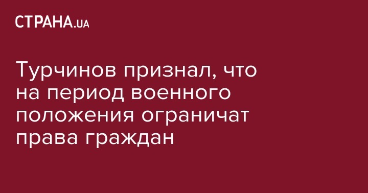 Секретарь Совета национальной безопасности и обороны Украины Александр Турчинов заявил, что на период военного положения могут ограничиваться конституционные права и свободы граждан. Об этом Турчинов заявил в ходе заседания Рады, передает РБК-Украина.