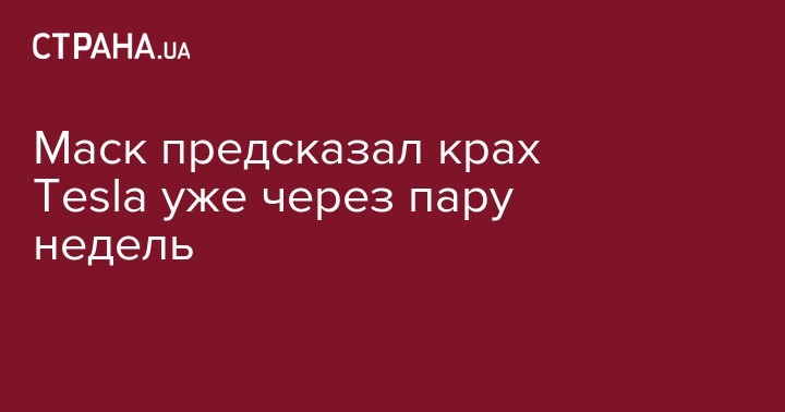 Глава компании Tesla Илон Маск прогнозирует банктротство концерна в ближайшем будущем. Об этом он заявил в программе Axios на канале HBO. Как рассказал Маск, у автопроизводителя серьезные финансовые проблемы и Tesla несет огромные потери.