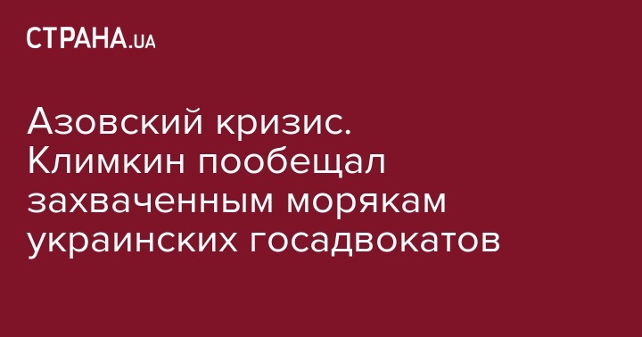 Глава МИД Украины Павел Климкин заявил, что украинским морякам, захваченным Россией, будут предоставлены украинские государственные адвокаты, поскольку они имеют статус военнопленных согласно Женевской конвенции.