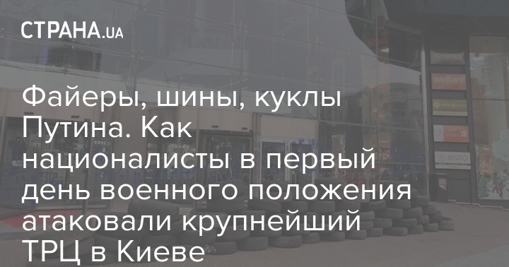 Во вторник, 27 ноября, ТРЦ Ocean Plaza (один из крупнейших торговых центров в Киеве) заблокировали националисты. Они принесли шины к зданию и перегородили входы в него. Пикетчики заявляют, что протестуют против того, что ТРЦ принадлежит российскому бизнесу.