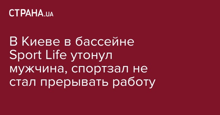 Сегодня, в Киеве на Подоле в одном из спортзалов Sport Life утонул мужчина. Известно, что погибшему было 30 лет, он занимался плаванием в бассейне. Об этом сообщает "Информатор" на своей странице в Facebook