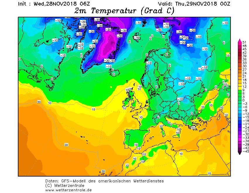 В четверг, 29 ноября, Украина попадает в воздушную полосу без осадков. Также во всех регионах кроме крайнего юга ожидается морозная погода -5...-12 градусов ночью и ​​-3-7 С днем. В южной части Украины около нуля.