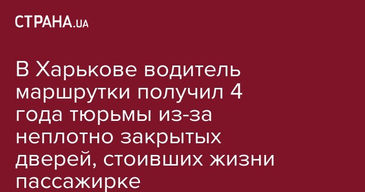 Орджоникидзевский райсуд Харькова приговорил водителя маршрутки, по вине которого пожилая женщина выпала из автобуса и умерла от полученной травмы, к 4 годам тюрьмы с лишением водительских прав.