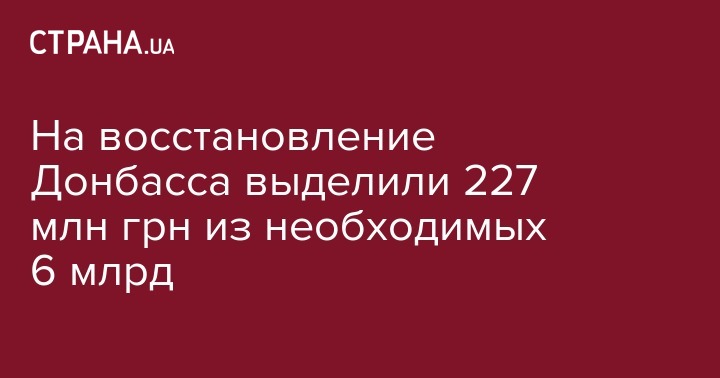 На восстановление Донбасса выделили 227 млн грн из необходимых 6 млрд