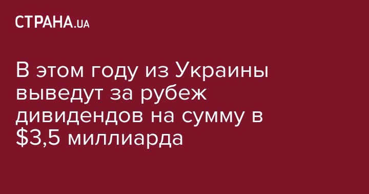 Напомним, что НБУ еще в августе прогнозировал репатриацию дивидендов в размере 2,5-3 млрд долларов по итогам года. Теперь сообщается, что выплаты по начисленным дивидендам составят 3,5 млрд долларов на фоне постепенной либерализации движения капитала и улучшения финансовых результатов предприятий с иностранным капиталом.