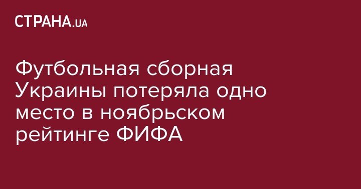 Футбольная сборная Украины потеряла одно место в ноябрьском рейтинге ФИФА