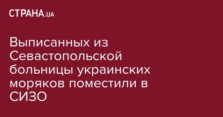 По ее словам, в этот же изолятор по разрешению врачей будут переведены и сотрудник СБУ и двое моряков, которые остались в Керчи. В керченской больнице российскому агентству подтвердили факт выписки украинских моряков. "Их уже нет, выписали", - сказал собеседник.