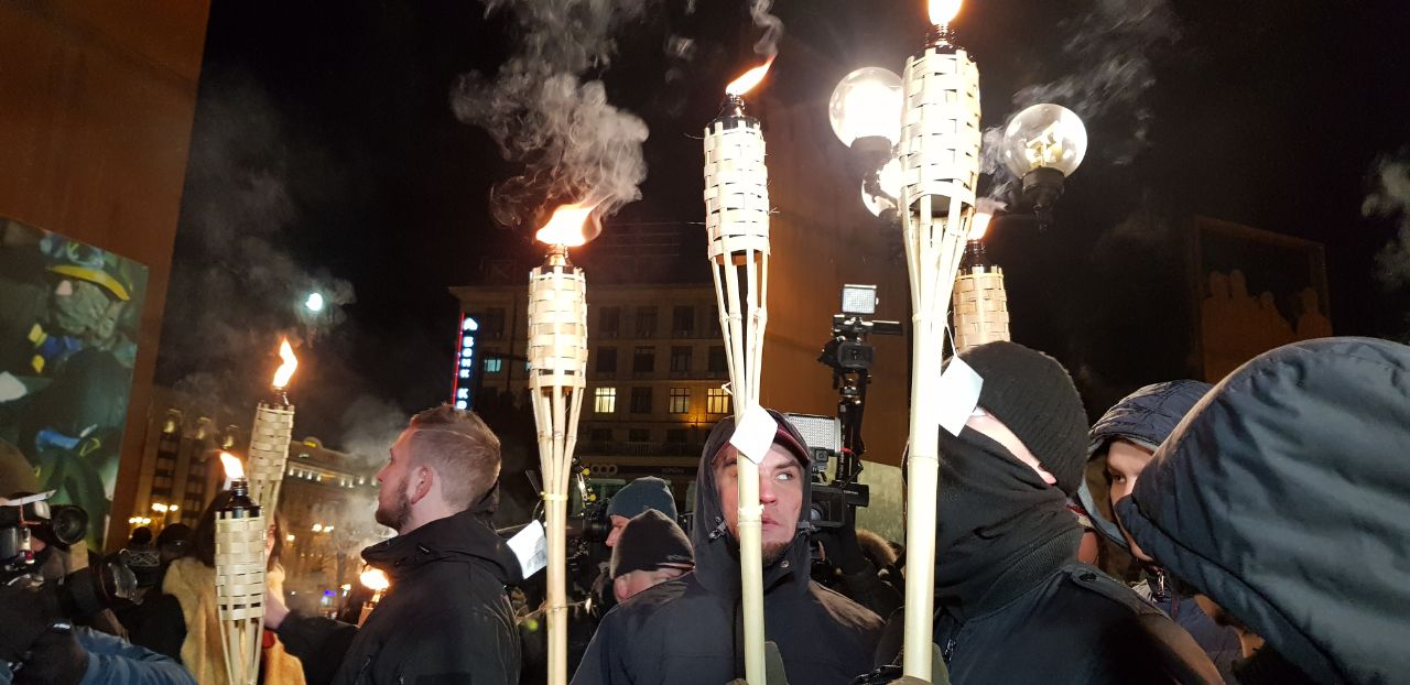 Возле администрации президента несколько участников шествия бросили шумовые петарды, чем спровоцировали небольшой конфликт с правоохранителями. Кроме того, полиция не дала поджечь активистам неизвестный предмет.