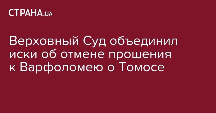 Верховный Суд объединил в одно производство два дела по искам к Верховной Раде об отмене постановления о поддержке обращения Президента Украины к Вселенскому Патриарху Варфоломею о предоставлении Томоса об автокефалии Православной Церкви в Украине.