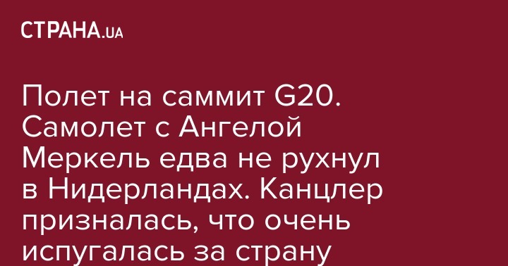 Полет на саммит G20. Самолет с Ангелой Меркель едва не рухнул в Нидерландах. Канцлер призналась, что очень испугалась за страну