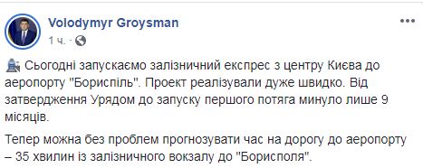 Сегодня, 30 ноября, начинает курсировать Бориспольский экспресс - Гройсман