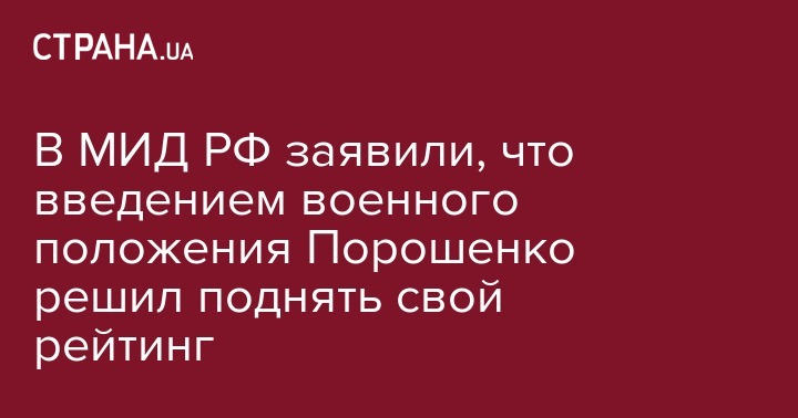 Киев использует военное положение, чтобы поднять электоральный рейтинг Петра Порошенко. Об этом  заявила пресс-секретарь Министерства иностранных дел России Мария Захарова, говорится в микроблоге российского дипведомства в Twitter российского ведомства.