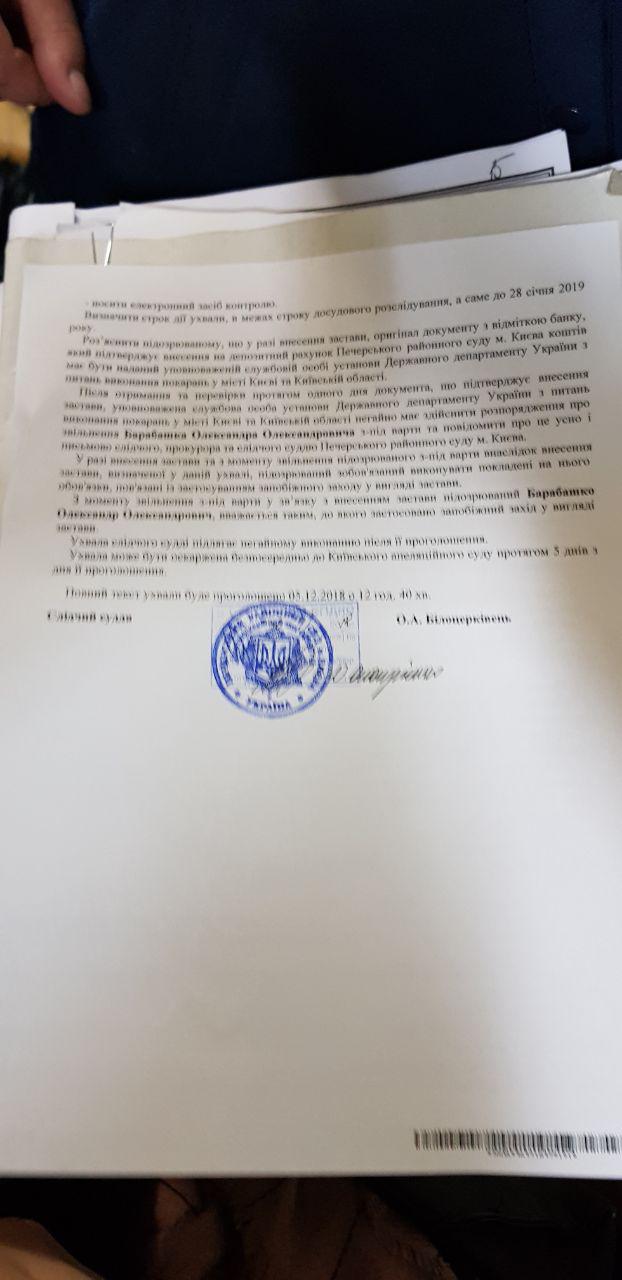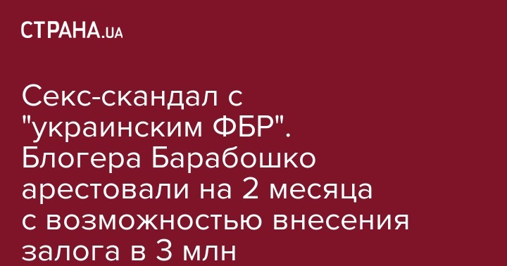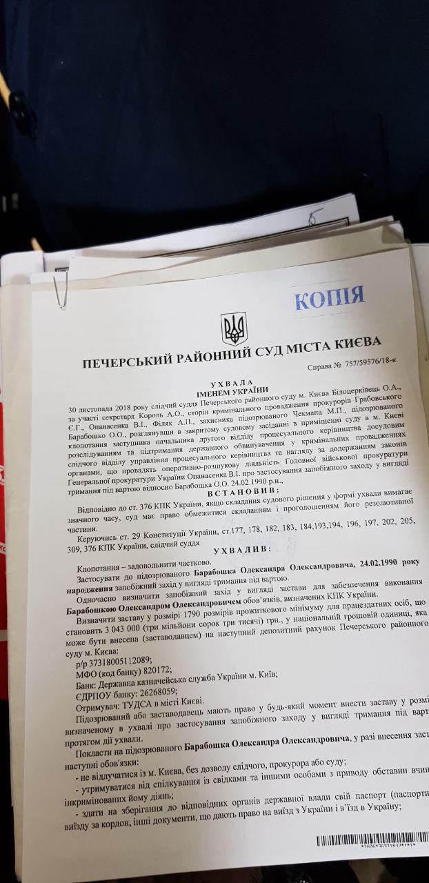 Блогера Александра Барабошко, в качестве меры пресечения, взяли под арест на 2 месяца с альтернативой внесения залога в 3 млн гривен. Решение было оглашено в закрытом режиме. О его содержании сообщил один из прокуроров.