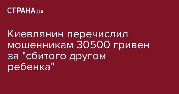 Киевлянин перечислил мошенникам 30500 гривен за "сбитого другом ребенка"