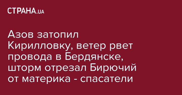 Также, по данным спасателей, из-за сильного шторма море на проездной части дороги соединилось с лиманом и от дорожного сообщения отрезало остров Бирючий (находящийся в конце Федотовой косы, пгт Кирилловка). Пострадавших нет.