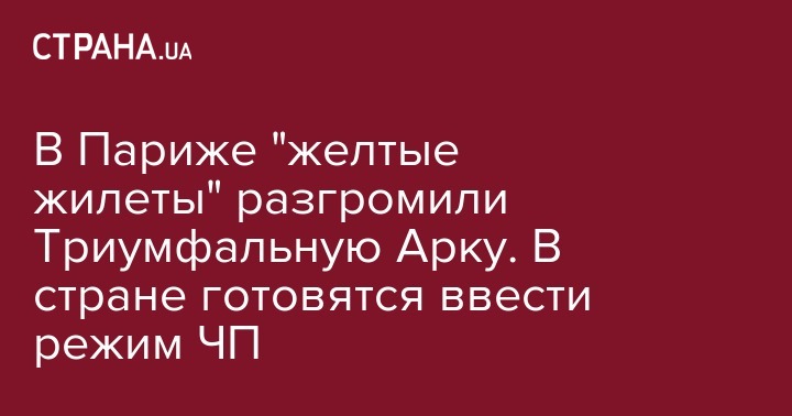 В Париже "желтые жилеты" разгромили Триумфальную Арку. В стране готовятся ввести режим ЧП
