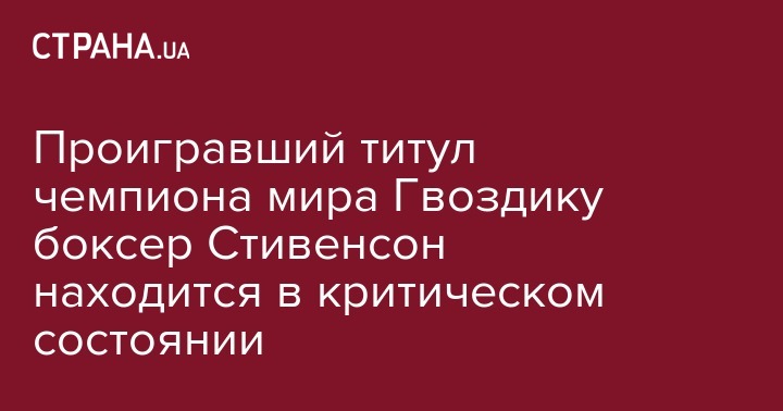 Проигравший титул чемпиона мира Гвоздику боксер Стивенсон находится в критическом состоянии