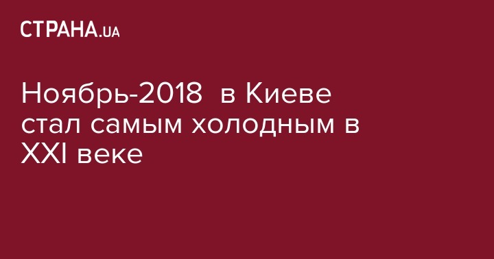 Минувший ноябрь 2018 года стал самым холодным в Киеве среди всех аналогичных месяцев с начала XXI века. Среднемесячная температура в столице составила +0,3 С, что ниже климатической нормы на 1,8 градуса.