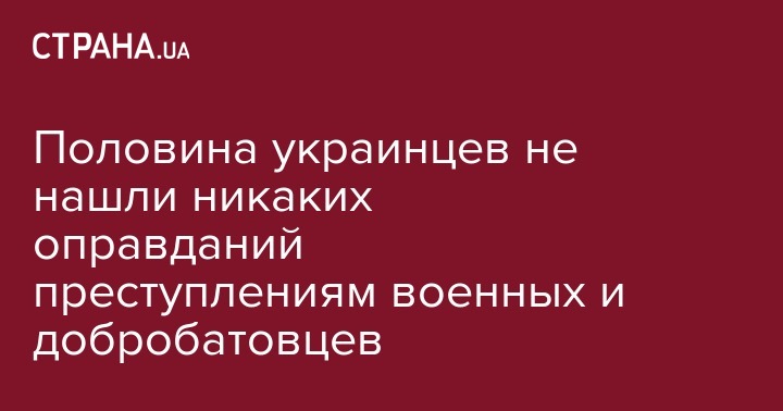 Согласно результатам опроса, которые были представлены в понедельник, 3 декабря, в Киеве на форуме по случаю 70-лентия общей декларации прав человека, 20% респондентов считают допустимыми преступления, совершенные во время боевых действий украинскими военными. При этом 45% респондентов убеждены, что оправдывать такие преступления категорически нельзя, и за них необходимо наказывать по всей строгости закона.
