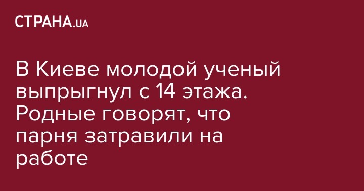 В Киеве молодой ученый выпрыгнул с 14 этажа. Родные говорят, что парня затравили на работе