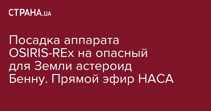 NASA в прямом эфире транслирует приземления запущенного два года назад в космос аппарата OSIRIS-REx на поверхность потенциально опасного для Земли астероида Бенну.