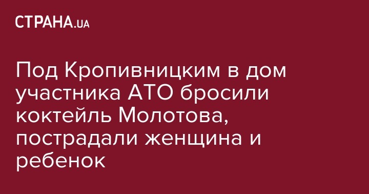 В Кировоградской области в дом участника АТО  бросили бутылку с горючим веществом, в результате чего пострадали женщина с малолетним ребенком. Об этом сообщается на сайте  ГУ НП в Кировоградской области.