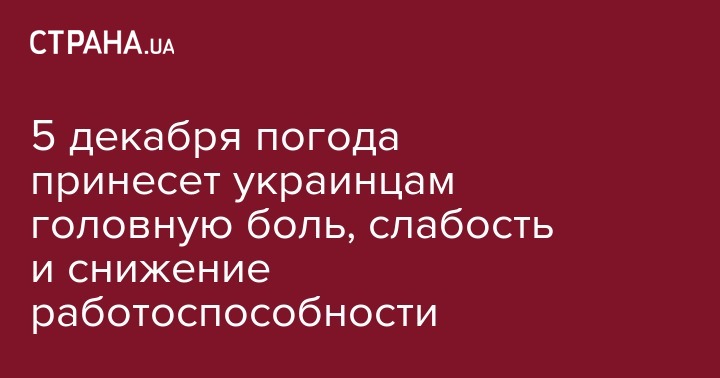Осадки в виде дождя и мокрого снега принесут завтра атмосферный фронт. Туманы и гололед представляют особую опасность для водителей. На западе Украины передают штормовой северо-западный ветер. Активизация магнитного поля Земли может провоцировать головную боль, общую слабость и снижение работоспособности. Температура воздуха ближайшей ночью установится в пределах от 3 тепла до 4 мороза, днем 5 декабря ожидается ​​около нуля, на юге до +5 градусов, на востоке до -3 градусов.